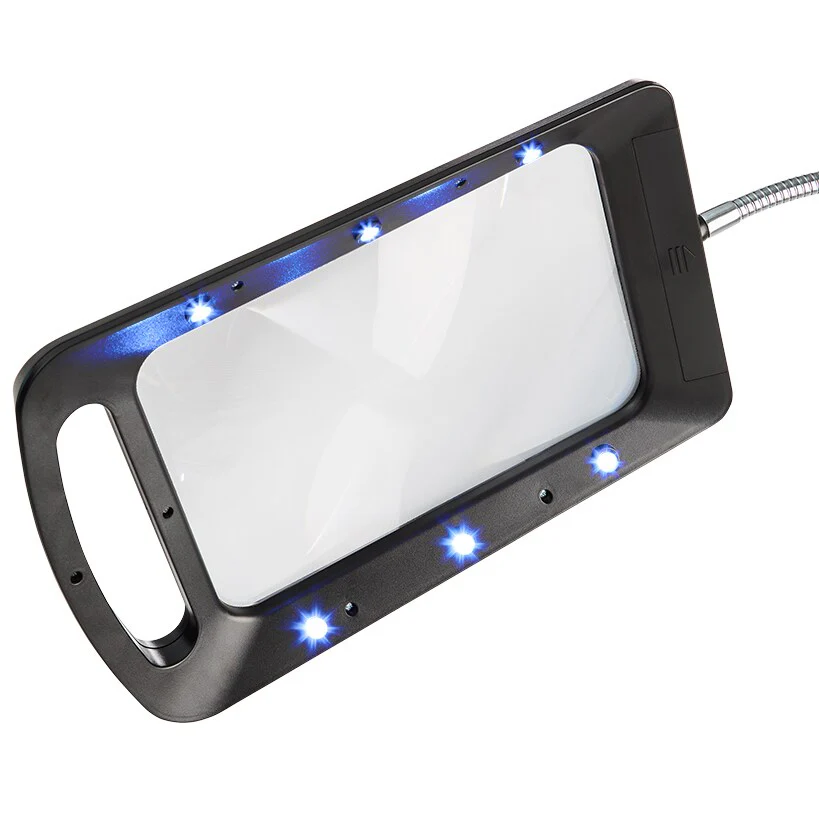 Magnifying LED Reading Floor Lamp gives you 3X magnification anywhere you need it. Reduce eyestrain while you read, craft and more. Flexible gooseneck lets you adjust the angle of the magnifying light panel to the perfect position for you. Weighted base keeps it stable, and the cordless design works wherever you do. A must-have for needleworkers, bookworms and other hobbyists.
