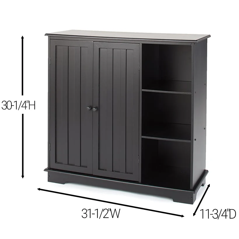 Beadboard Wooden Cabinet with 3 Storage Shelves and Cupboard