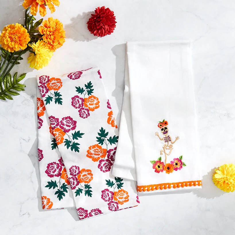 Butterfly and Skeletons Embroidered Kitchen Towels is a unique Halloween or Day of the Dead accent for your kitchen or home decor. One towel has an embroidered design, while the other features an all-over print. Select from Skeletons and Skull. 2-Pc. set is a great value!