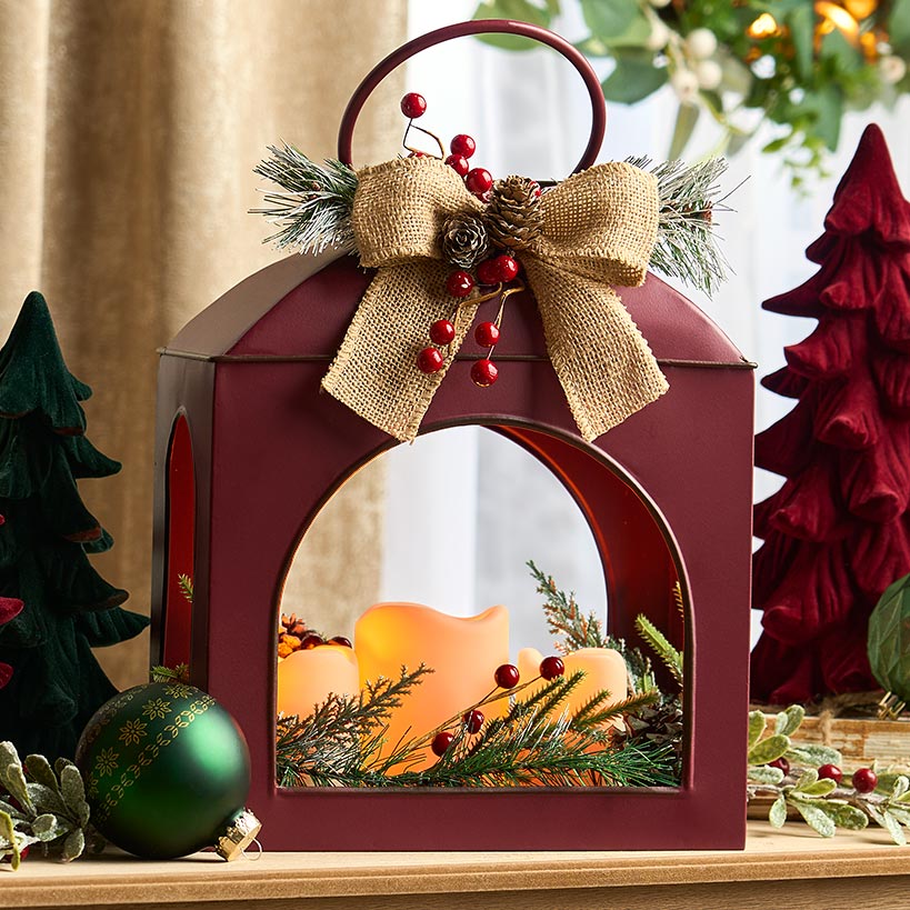 The Christmas Country Red Lantern with LED Candle Trio is a stunning addition to your rustic holiday lantern collection that brings a warm, cozy glow to any room. This farmhouse holiday centerpiece features three flameless Christmas candles nestled inside a vibrant red frame with seasonal greenery accents. Choose between the Merry Christmas or Believe styles to showcase your favorite holiday sentiment on your mantel or tabletop. These battery-operated festive decor pieces offer the perfect touch of traditional charm without the worry of an open flame.