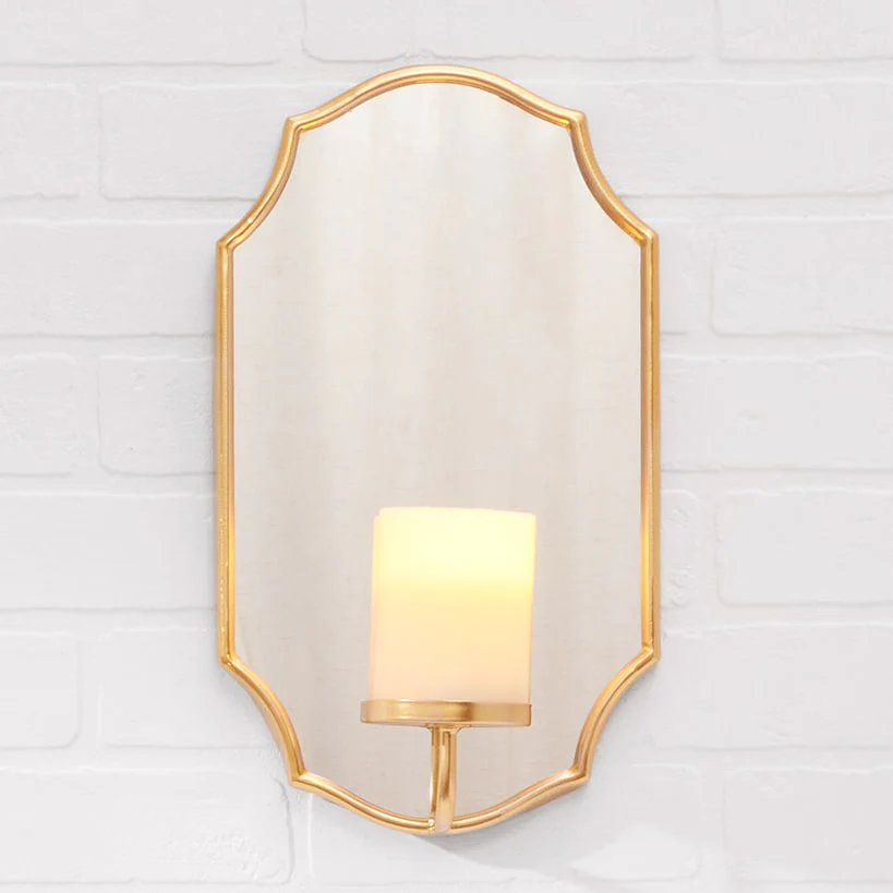 Elegant Mirror Wall Sconce With LED Candle - Black or Gold