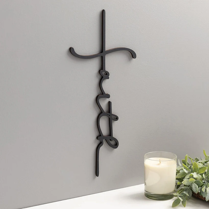 The Faith Cross Wood Plaque brings a touch of elegant inspiration to any room in your home. This spiritual home accent features a beautiful design that transforms the word "faith" into a stylish cross shape. Choose from the sophisticated Black or clean White finish to perfectly complement your modern farmhouse style. This religious wood plaque serves as a meaningful piece of inspirational wall decor that adds a sense of peace to your living space.