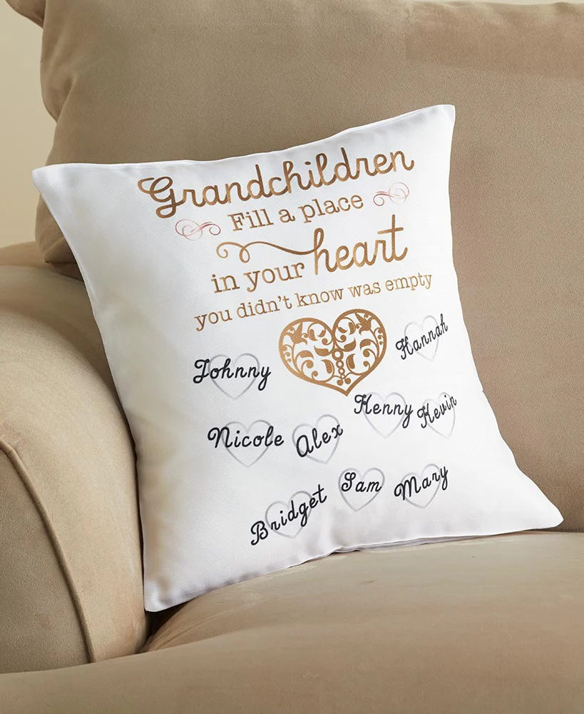 Give grandma a special gift with a Personalized Grandchildren Sherpa Throw or Pillow. Each item features a soft front, a sherpa back and yarn stitched edges. Personalize with up to 12 names, up to 12 characters per name. Upper and lower case. Sorry, mail/fax orders are not accepted on personalized items; please order via web or phone agent. This item cannot be shipped to P.O. boxes and APO/FPO addresses.