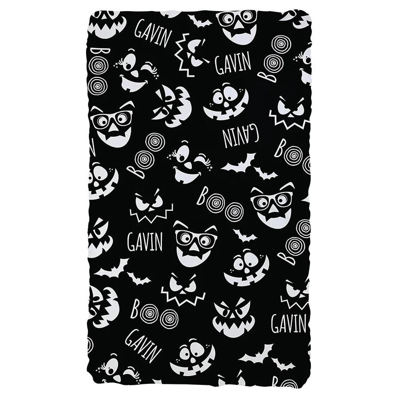 Add haunting style to your home with the Personalized Halloween Plush Blanket! This cozy, fuzzy blanket features ghoulish Halloween faces on a black background and can be personalized with your name with up to 9 uppercase letters. Perfect for yourself or as a fun gift for Halloween lovers, this blanket promises comfort and a touch of spookiness to any room. Sorry, mail/fax orders not accepted on personalized items; please order via web or phone agent. This item cannot be shipped to P.O. boxes and APO/FPO addresses.