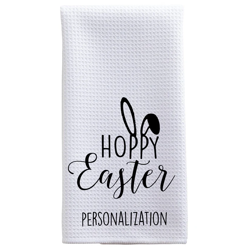 Bring a dash of festive flair to your kitchen with the Personalized Hoppy Easter Tea Towel! This charming towel is a celebration of Easter's joy and warmth. Featuring a trendy waffle-style weave, this towel combines style with functionality, making it an eye-catching yet practical addition to your Easter setup. Personalize it with a family name or special message, up to 24 characters, all in uppercase, to create a unique keepsake or gift. Whether you're drying dishes or displaying it for guests, this tea towel adds a personalized touch that speaks to tradition and individuality. Sorry, mail/fax orders not accepted on personalized items; please order via web or phone agent. This item cannot be shipped to P.O. boxes and APO/FPO addresses.