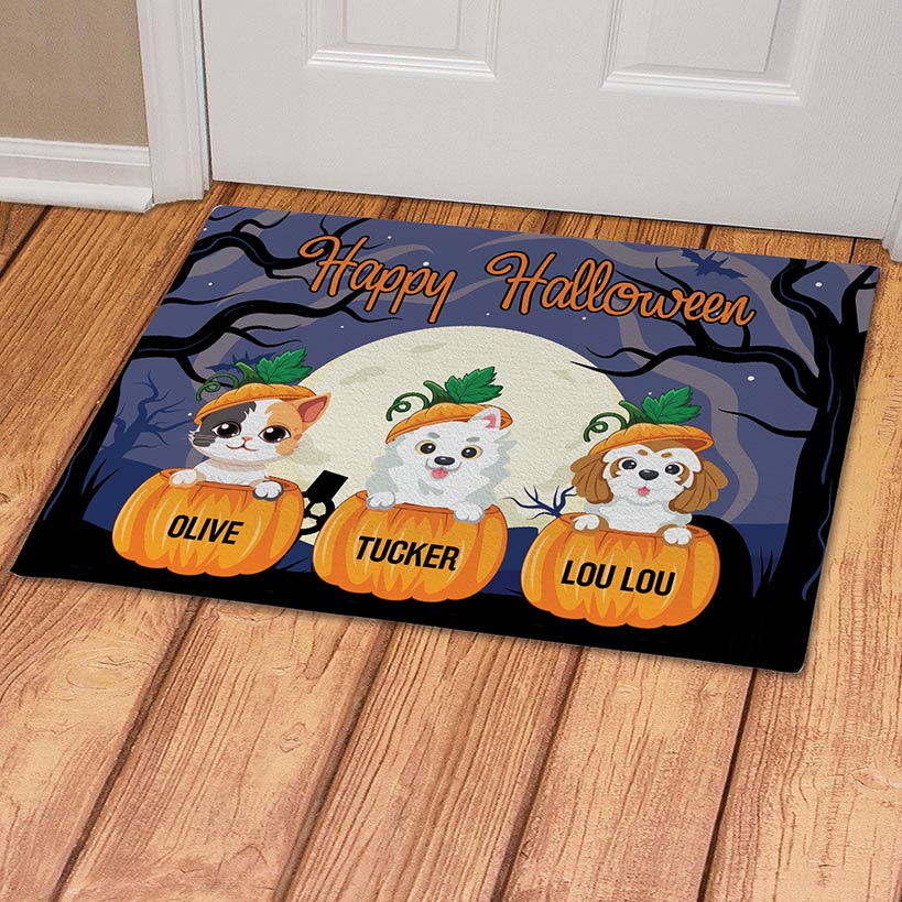 Personalized Pumpkin Pets Halloween Doormat—